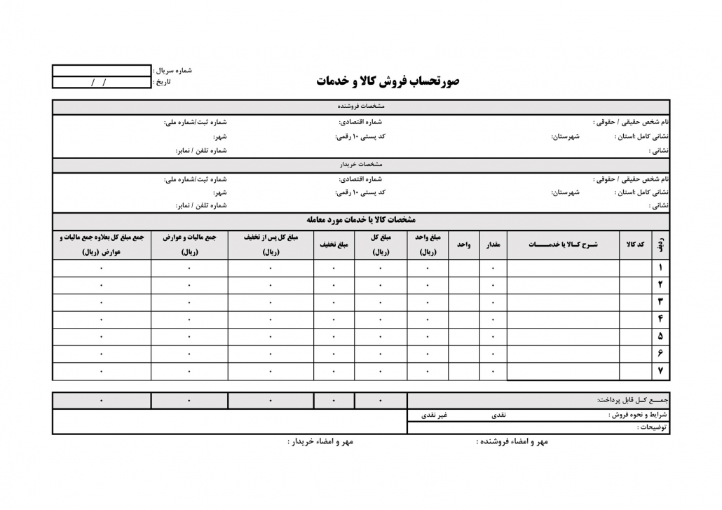دانلود فاكتور فروش رسمي مورد تاييد اداره دارايي با فرمت jpg و Microsoft word , و اکسل